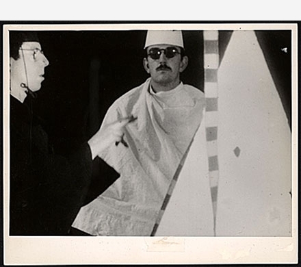 Two actors perform absurd actions in sets composed of geometric shapes. Two experts try to explain what it all means. Goofing off in positive/negative space, Robert Nelson and collaborators William T. Wiley, Ron Hudson, R.G. Davis and Steve Reich construct a spirited work that invokes Alfred Jarry, Dada and improvised theatre.